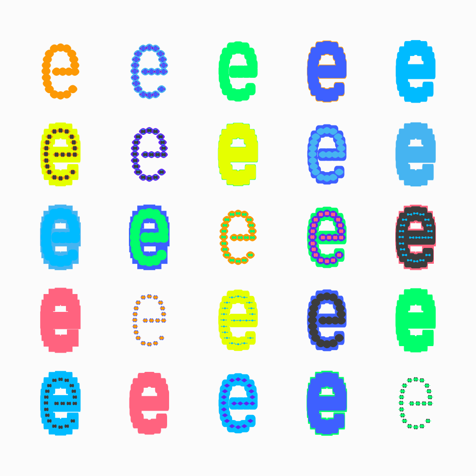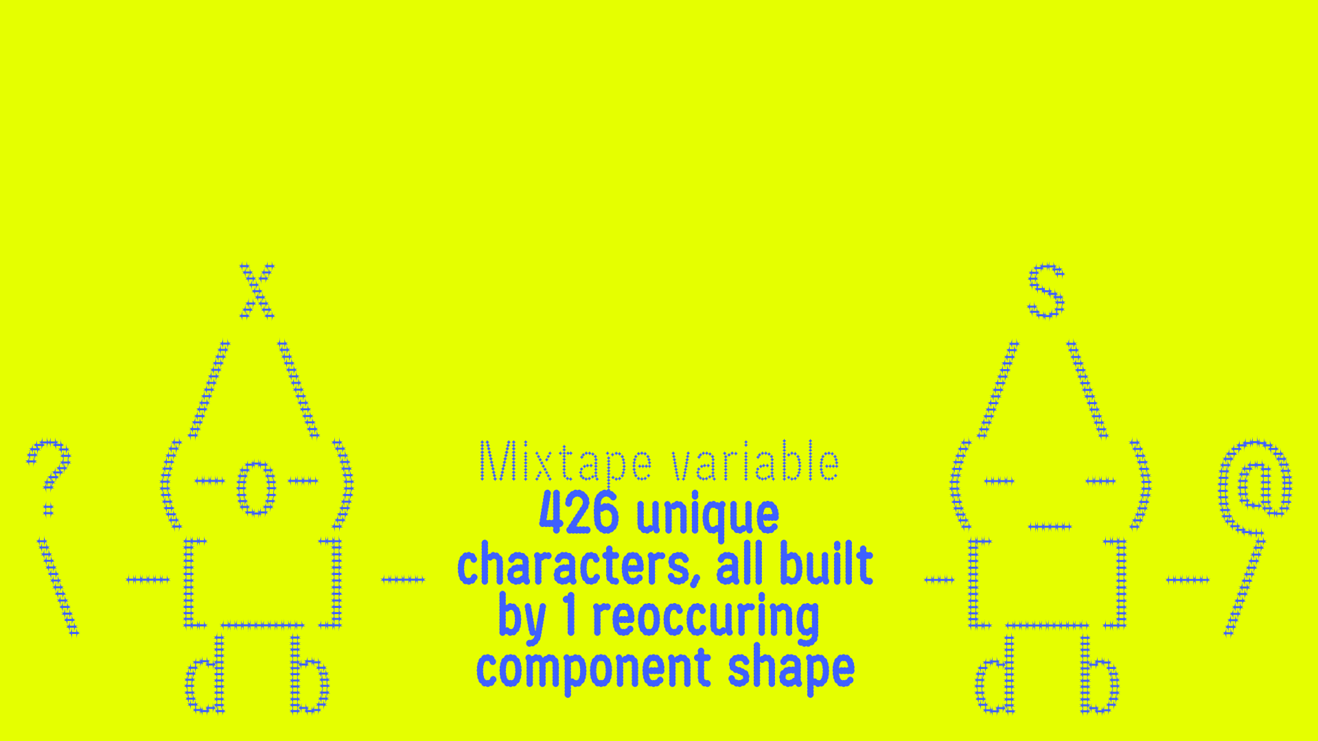 Mix-match, switch-swap, squeeze-squash to your heart’s desire with Mixtape Variable – a playful variable typeface constructed with one (1) recurring component shape. Using variable font technology, the user can customize the typeface’s weight, stretch, and roundness. Have fun with these three value sliders to make a font unique to your project. Currently this font is only available through personal request. Email me at design@edgarcasarin.xyz to get a quote on this quirky variable typeface.