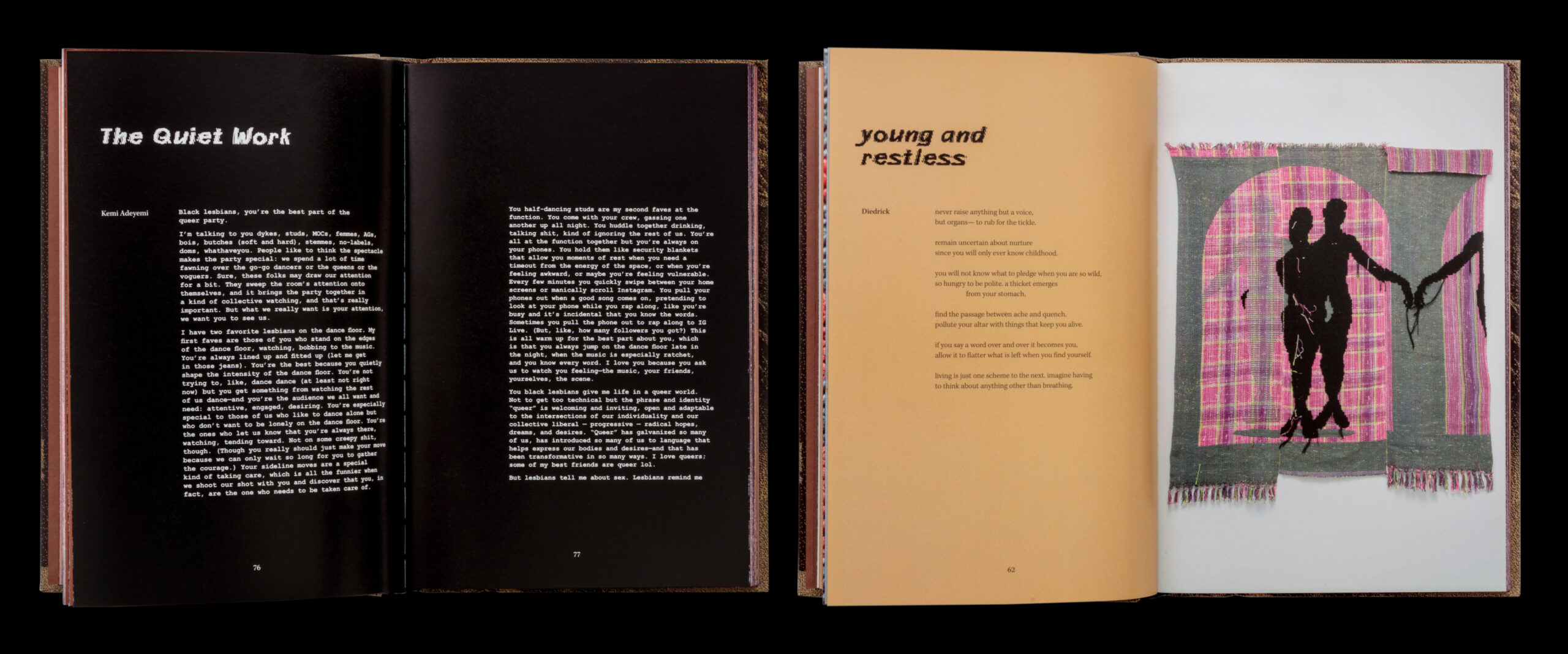 The Quick is the compendium monograph, and supplemental site of collaboration, to the exhibition of the same title curated by Ashley Stull Meyers featuring the artwork of Diedrick Brackens and D’Angelo Lovell Williams.